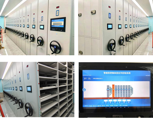 解决方案:根据客户存放的产品,本次密集架选用的战备地图密集架,内部为标准6层,外加电子密码锁,可以更好的储存物资。面板采用通体澳洲白,黑色控制屏幕搭配黑色手摇方向盘,与整个档案库房的装修色调达到平衡,层次感、现代感、时尚感油然而生。