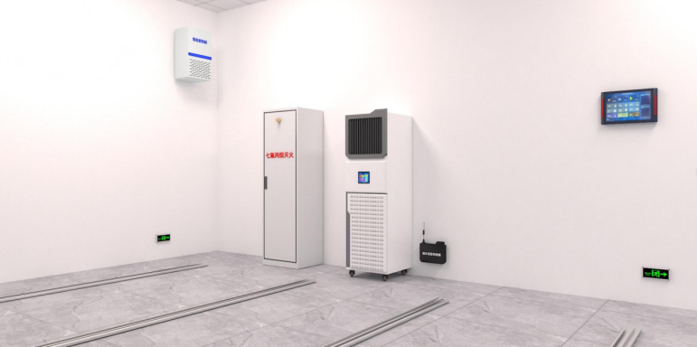 档案室环控设备展示(七氟丙烷灭火、除湿加湿一体机、新风机、区域控制器)
